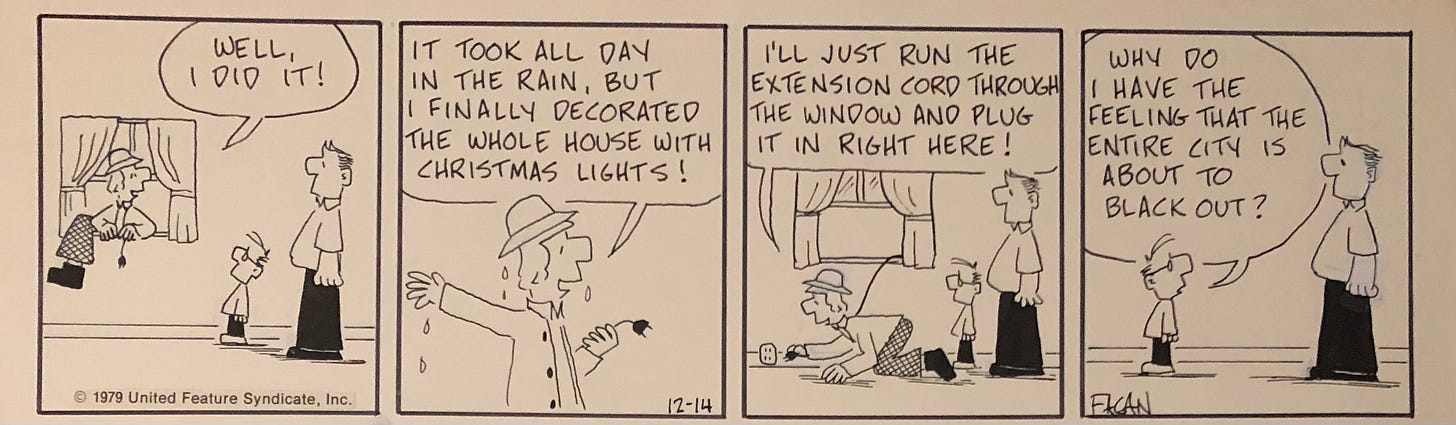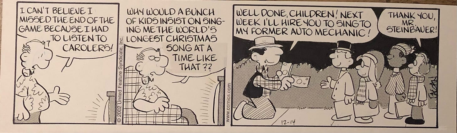I was in Minnesota that day because we were visiting our daughter’s family for Thanksgiving. On Saturday (Schulz’ birthday) my daughter and son-in-law loaded all of us in the family van for a little excursion. My wife had mentioned to them that it might be fun to see where Sparky grew up. My daughter mapped it out. She even found his elementary school. It was a very fun day!