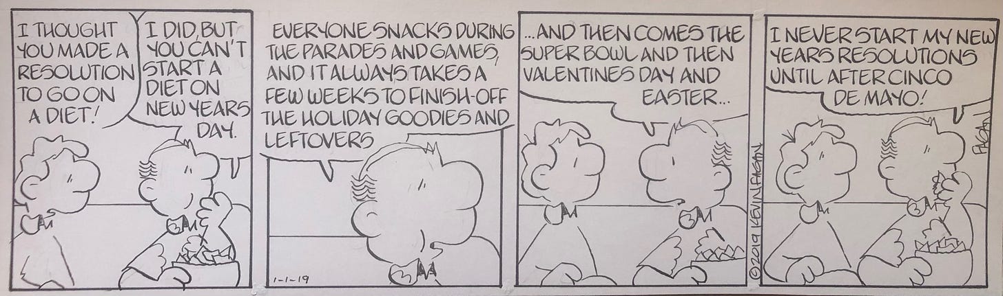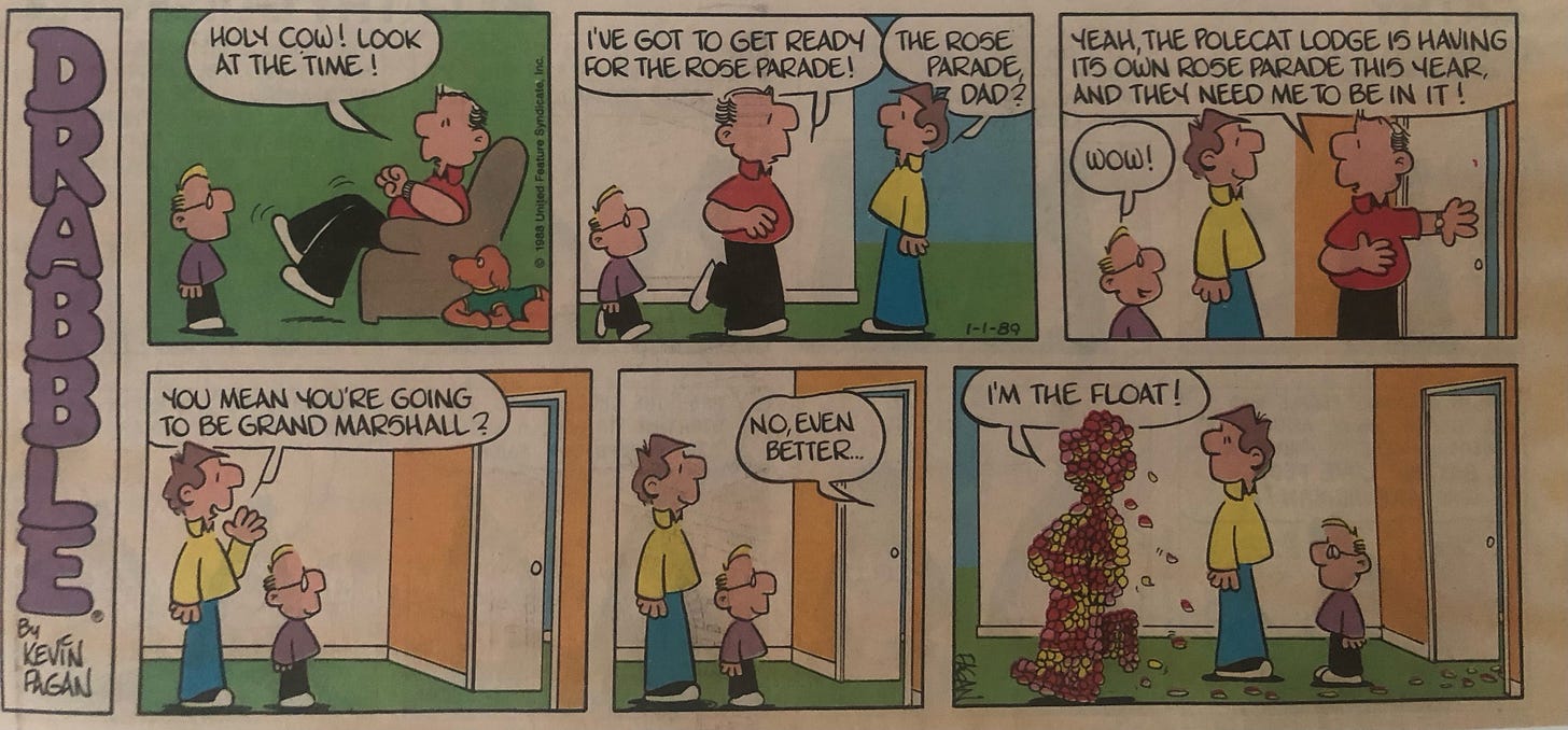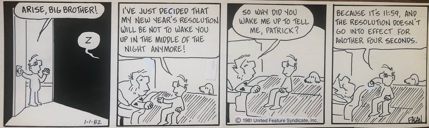 Here are some New Years Day Drabble strips from over the years, along with some day afters…